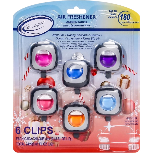 Air Jungles Car Air Freshener Clip, 6 Variety Vent Clips, 4ml Each, Long Lasting Air Freshener for Car, Up to 180 Days Car Refresher Odor Eliminator