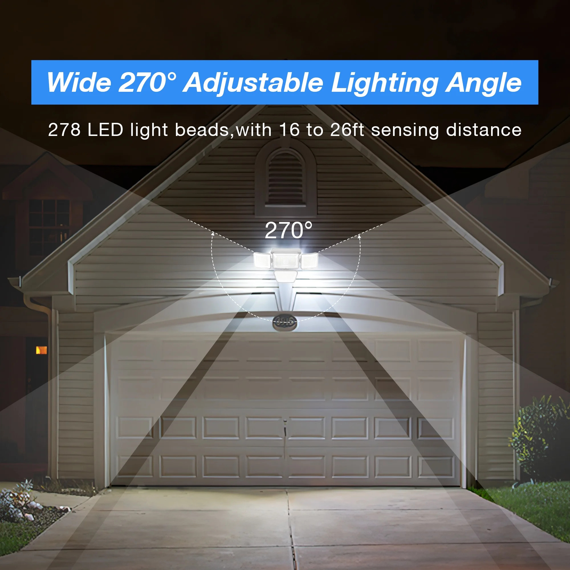 - Wide Coverage: Four adjustable heads provide a 270-degree wide lighting angle and 39 feet sensing distance for comprehensive illumination.