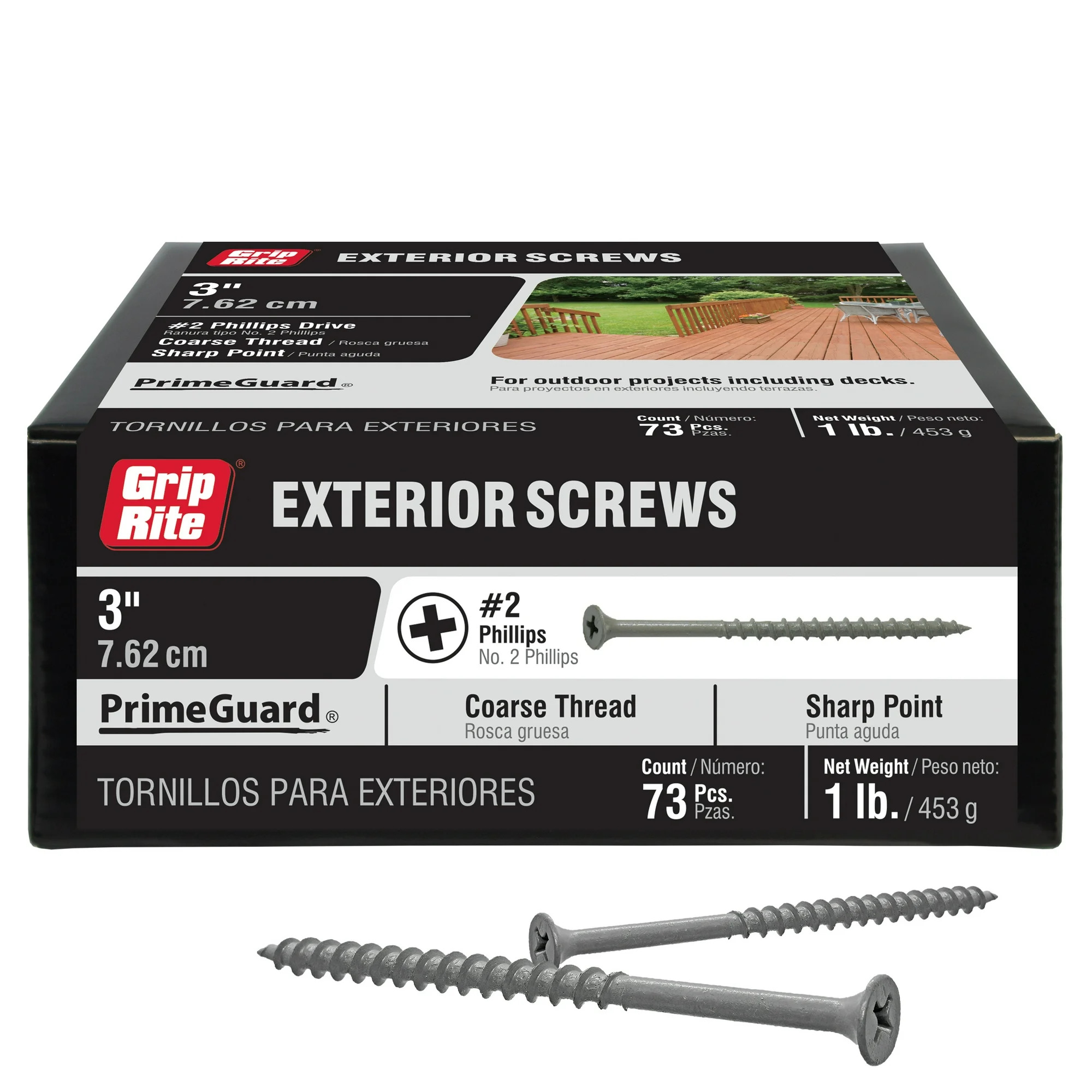 • Grip-Rite® Exterior Screws with PrimeGuard® are protected by our 10-year warranty when installed correctly